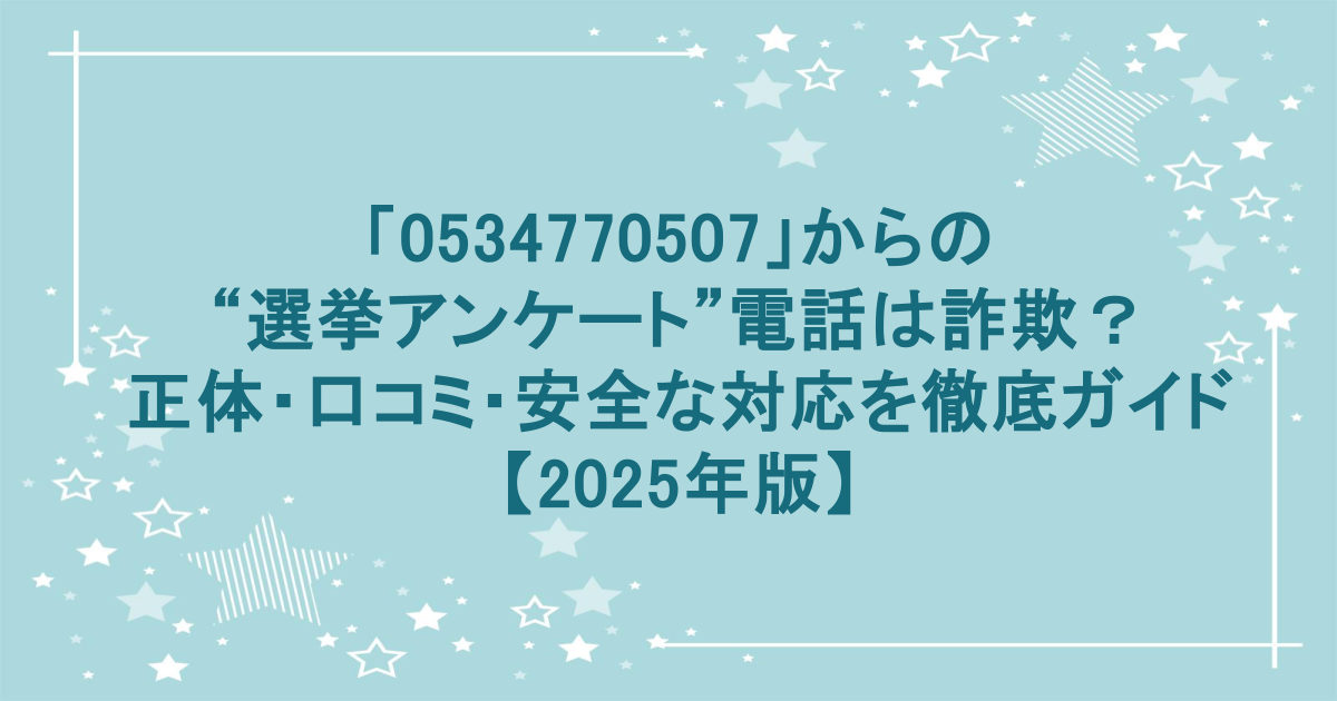 「0534770507」からの“選挙アンケート”電話は詐欺?正体・口コミ・安全な対応を徹底ガイド【2025年版】